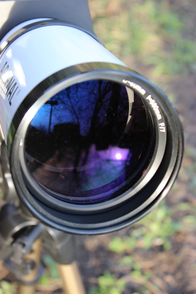 Все оптические элементы выполнены с многослойным просветлением Fully Multi-Coated, края линз имеют чернение. Предусмотрены коллимационные винты для объектива.